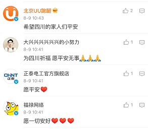 线上,一群蓝V和KOL在社交媒体上同样以自己的方式,为九寨沟守护、祈福。海尔官微在昨晚,地震消息传出半小时内便开始转发速报,关注事件。