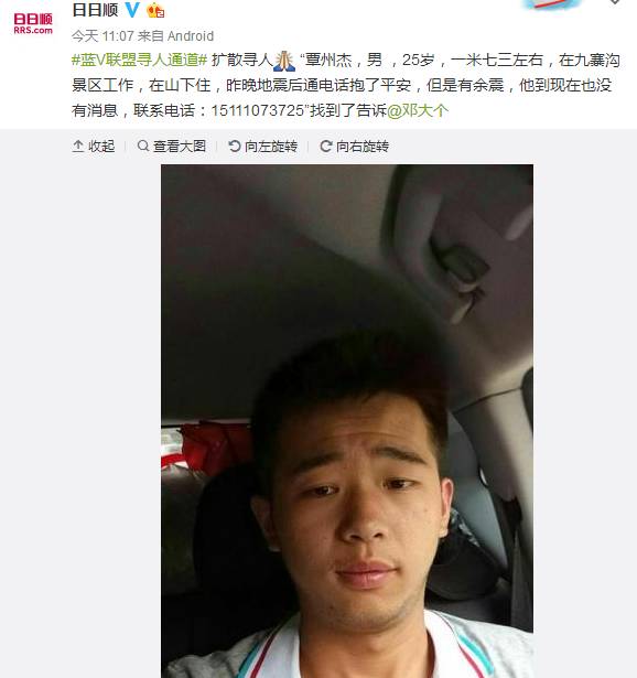 另外,百度贴吧也开启“贴吧寻人”:四川吧、九寨沟吧已置顶寻人报平安帖。