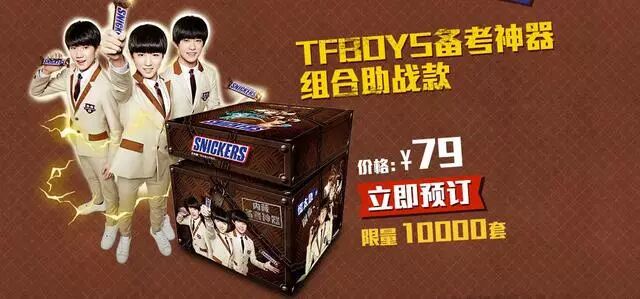 面对TFboys复杂的粉丝构成,“士力架”讨巧地避开了三人站位、曝光程度等粉丝争议点,选择推出组合款、单人款的不同形式。(榜妹为你的机智点赞!)