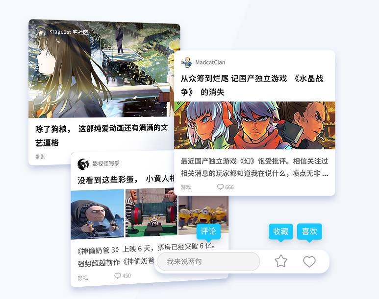 专栏区分为四个板块,“推荐”“动画”“游戏”和“其他”,从形式上看与其他内容平台差异不大,有关注作者、评论、收藏、点赞等各种互动功能,但内容基本还是偏二次元话题。