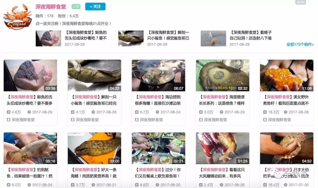深夜美食的打开方式可以相当刺激,b站的深夜海鲜食堂就以奔放的画风吸引了大批围观群众。画面直接、猎奇、不加任何文艺滤镜,完(cu)整(bao)呈现各种海鲜的料理过程,令人眼界大开。
