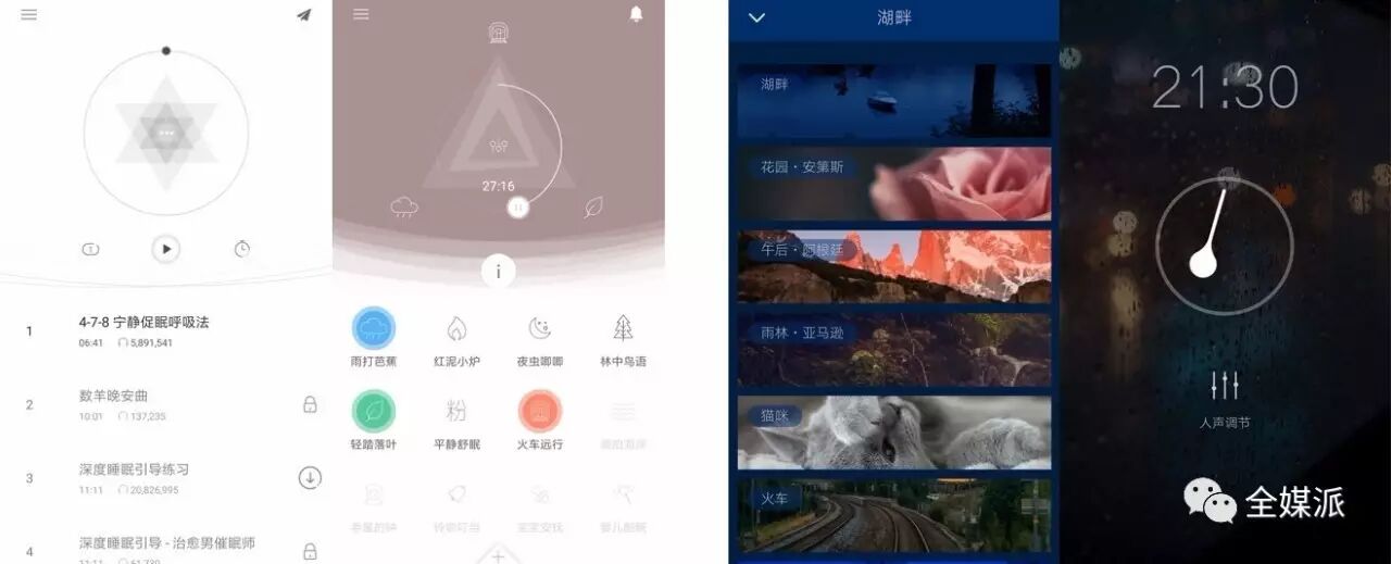 而国内的小睡眠、云梦等助眠应用,也进行了各种尝试:或可根据个人喜好糅合多种催眠白噪音,或提供助眠氛围音乐和专业主播的疗愈音频,一切设计都以助眠为出发点。
