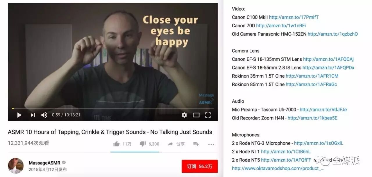 在国内ASMR刚刚起步的阶段,圈内常会搬运国外ASMR大神的作品,如Maria、德叔这类资深作者的视频。在YouTube上,Maria最热门的视频斩获了1800万的播放量;已被封神的德叔则制作过超长的ASMR催眠视频,著名的10小时和20小时系列让评论区网友忍不住开玩笑:“妈妈让我最后看一个视频就要睡觉,于是……”