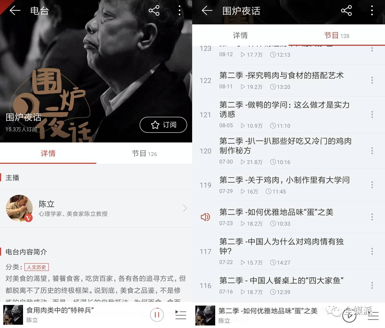 相比起重口味的视频,许多人偏爱娓娓道来式的声音与文字内容。在周末夜晚更新的“围炉夜话”,就有一股醇厚的生活质感。围炉夜话的主讲人陈立是浙江大学的心理学教授,还是两季《舌尖》的幕后顾问。作为杭州老饕客,陈教授善将美食与历史人文进行有机融合,哪怕是一份小笼包、一只鸡蛋,都能道出背后的流变历程。