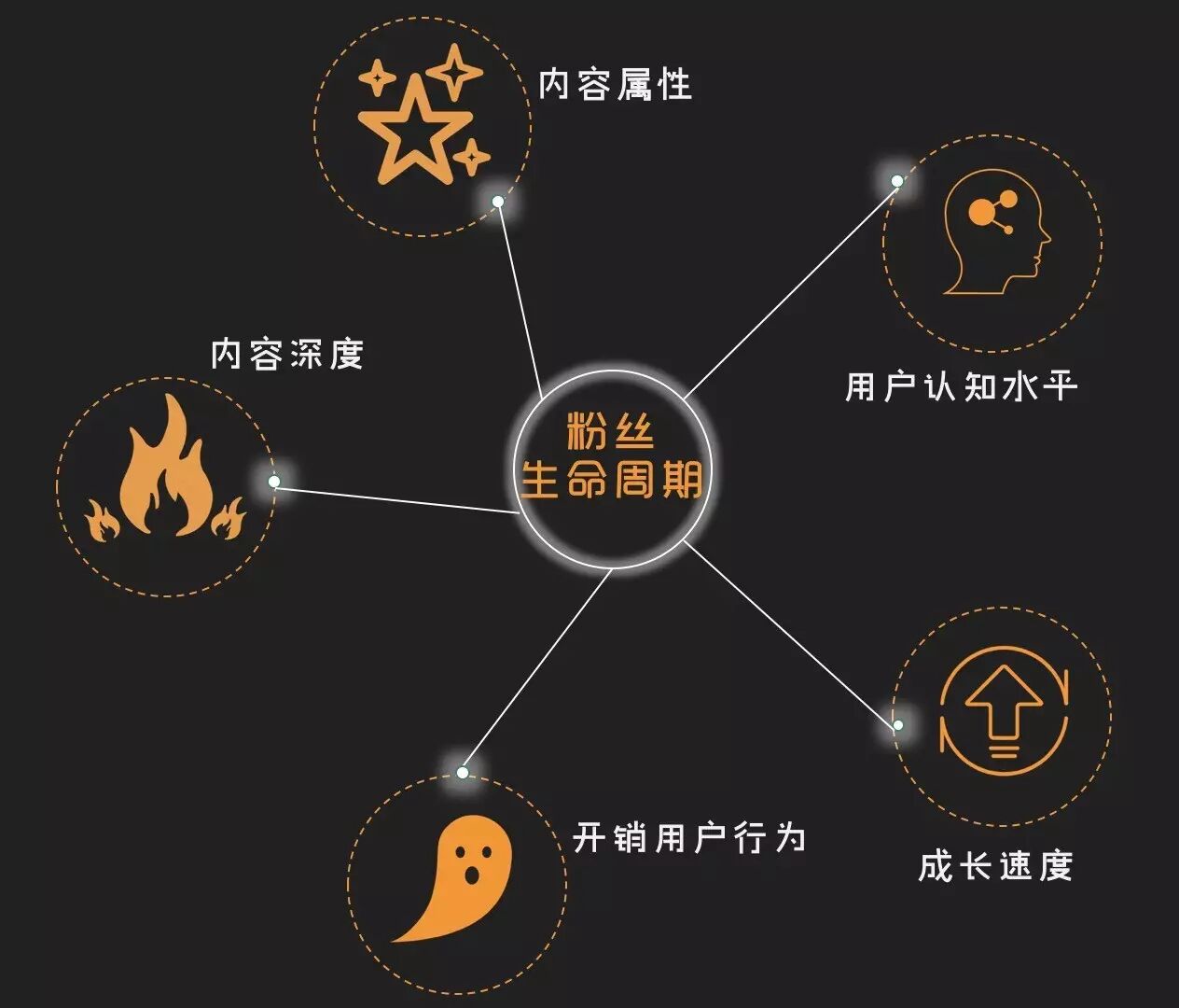 我们不妨先简单看下粉丝生命周期的主要关联因素:
