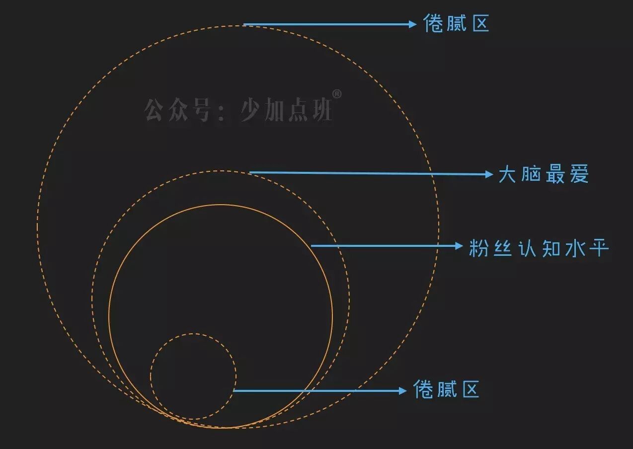 即,“略微”高于粉丝认知层次的内容是最容易被大脑解读为“有趣”的。