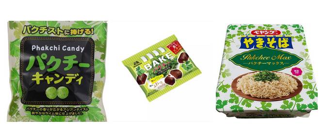 又或者奇葩日本零食——“香菜全家桶”,香菜味的糖果,香菜味的果汁,香菜味的薯片。