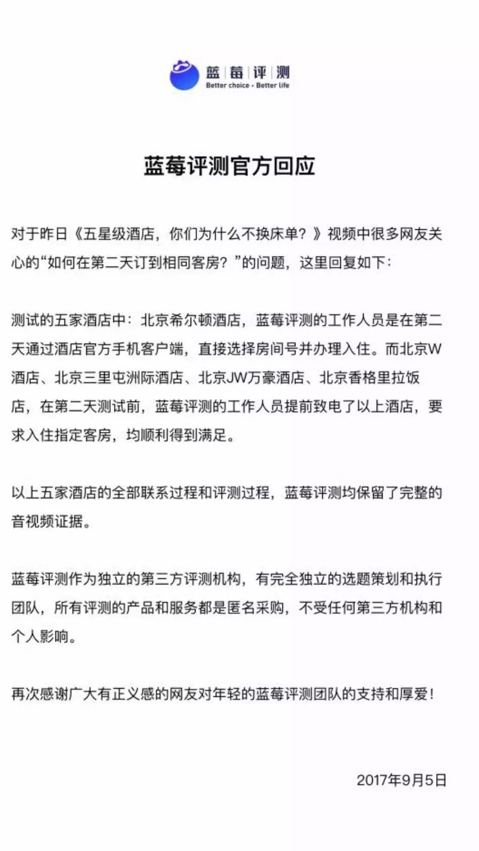 对于各种质疑 ,今天傍晚“蓝莓评测”推文进行了回应。
