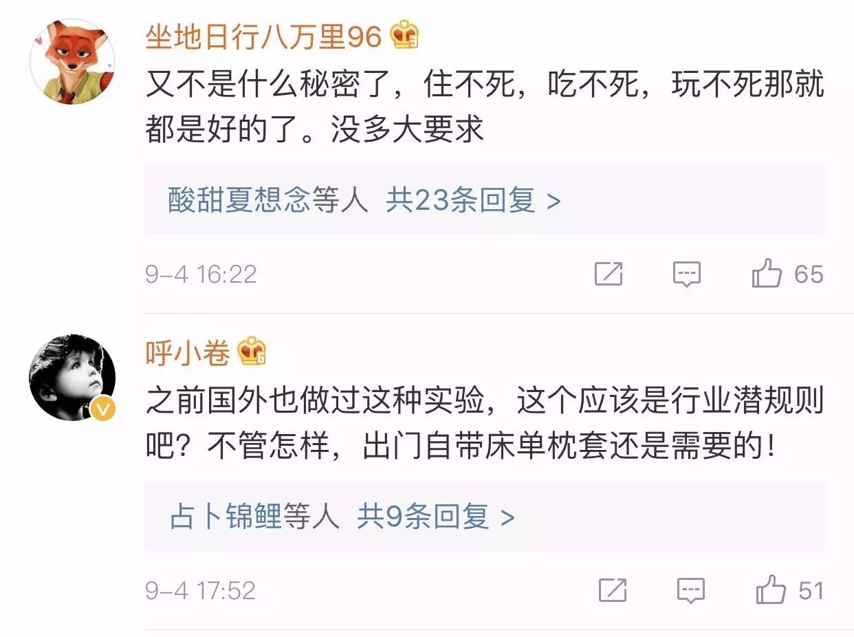 “蓝莓评测”的文章发布后,网友们纷纷表示以后住酒店要自己带床单和洗漱用品,还有不少网友表示无奈, “这是行业潜规则,已经习惯了”,更有人调侃道,“这就是我不去希尔顿住的原因” 。