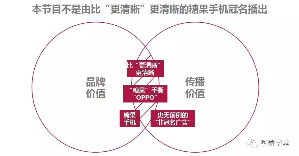可以绑定竞争对手。糖果手机的“非冠名广告”也机智地绑定了手机界的大佬 OPPO,至少在一段时间内,许多人在看到 OPPO 的广告时,会不由自主地想起糖果手机。