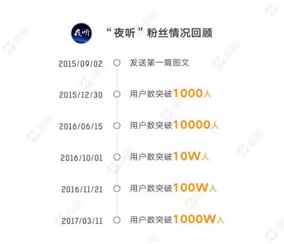 其实这个方向不难捕捉,比如,在今年公号衰落、打开率的各种背景下,新榜就专访了一个公众号——“夜听”。这个公号每天发一段语音,短短几分钟就10万+,在新榜3月份专访夜听的数据就显示,“3月份时夜听单篇文章的点击量基本超过700万,点赞量经常超过7万,比很多公众号的阅读数还多,而限定只能放出100条的留言,“夜听”一天收到的留言一年365天都放不完。而且当时“夜听”每天涨粉都超过10万,多的时候甚至高达20多万。”