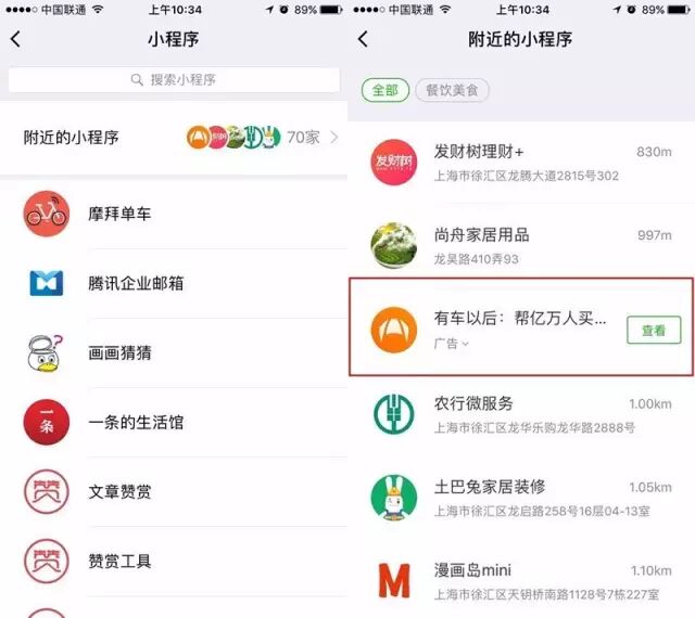 据了解,这次参与新能力测试的小程序并不多,“有车以后”有幸被微信邀请第一批试点。徐晨华介绍,这次据LBS来设定投放的广告,可以精确到以某个地点为核心的一公里范围内。