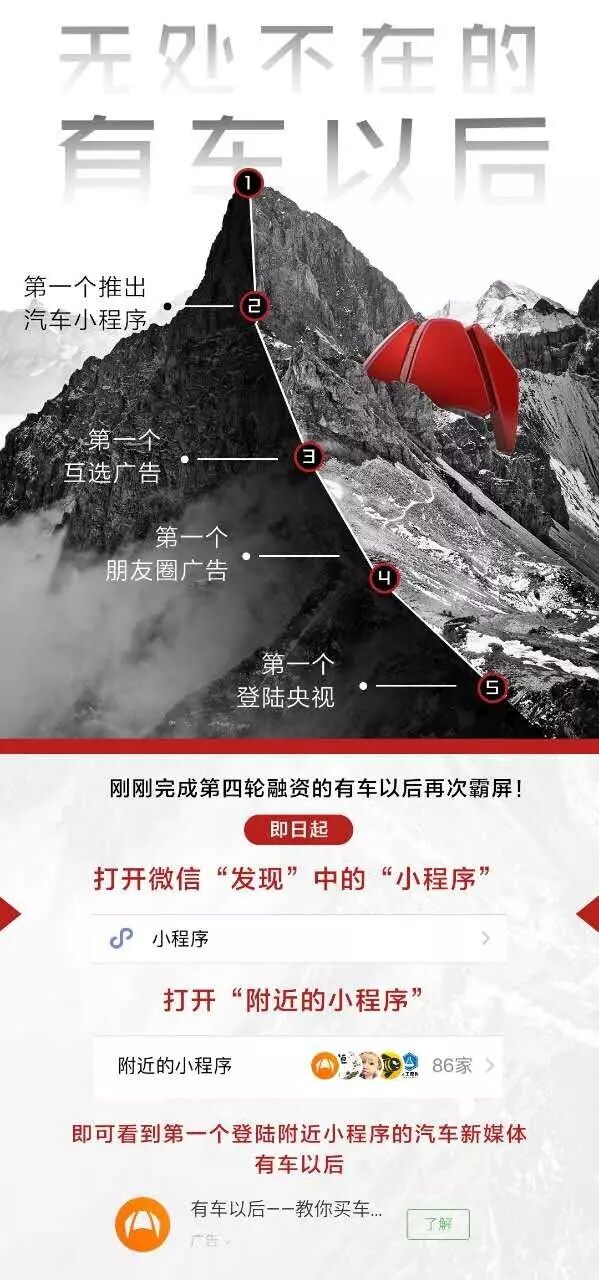 首波选择覆盖汽车厂商投放,徐晨华主要目的是想发出一个明确信号,让大家知道“有车以后”的小程序正式开始大规模推广。