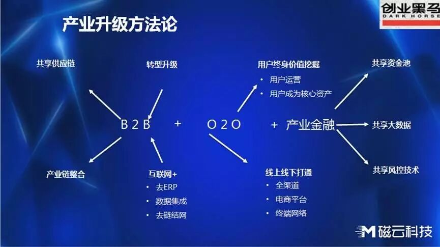 由此,我们提出了 “产业互联网方法论”:B2B+O2O+产业金融。