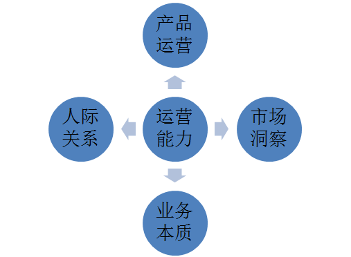 以上四大方面还可以拆解出很多细分的能力,受篇幅限制这里就不详细说明了。相信大家都能够清晰的明白,对产品的理解越深、市场的关注度越高越明朗、行业知识和对本质的理解越清楚、人际关系的处理越能够做到左右逢源,你的综合运营能力就越强。