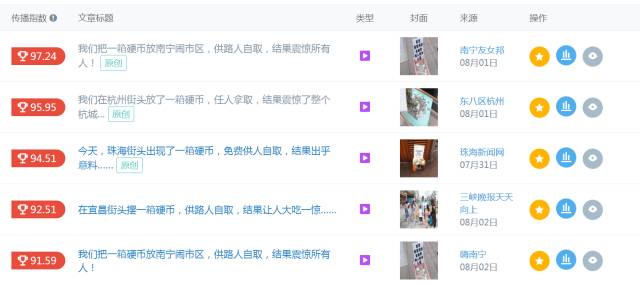 还有前段时间备受争议的《一箱硬币》的爆文,全中国有好多地方都在做这个活动,“我们把一箱硬币放在XX地方,结果竟然震惊!这个“一箱硬币”的活动是很新鲜的,在此之前,大家并没有遇到过类似的做法,所以活动一经推出,读者自然会想要点击看看,试图了解这个活动的形式,内容。