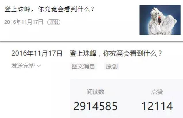 《登上珠峰,你究竟会看到什么?》,阅读量291万,涨粉6万多 。