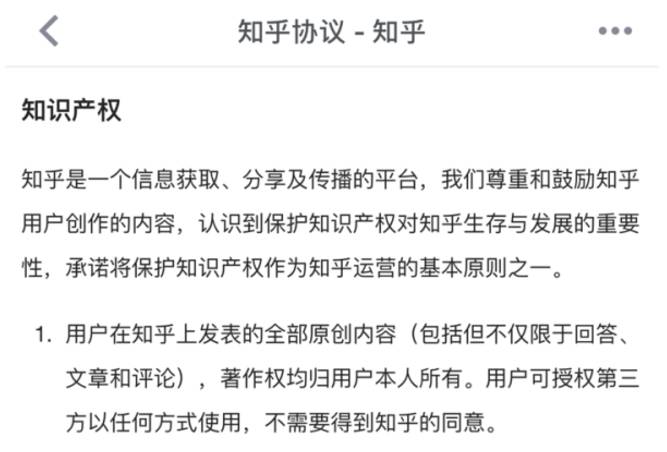 不过从用户的角度来说,近几年大家的版权意识越来越强,创作者想得到的是平台对自己内容的尊重和保护,而不是粗暴的占有。微博之前那版协议里的“独家发布”条款,确实冒犯了用户。反观知乎等平台关于版权的表述,就显得对用户友好很多。