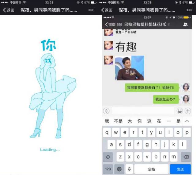 这个H5以“深夜,有男同事问我睡了没”为话题,讲了一个大龄女青年突然面对这个问题时的各种心理活动。自己写了很多想说的话,又故作矜持的退格删掉,又去闺蜜八卦群里各种问,简直就是中央戏精学院毕业的!