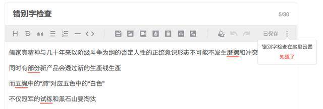 与错别字检查有些相似,这个功能是指系统能自动将错误的标点修正过来,一方面提升了用户的阅读体验,一方面也等于帮创作者把关,避免一些不必要的错误。