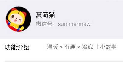 「夏萌猫」在运营前期的简介很简单,只有寥寥几字,这样放之四海而皆准的介绍,对于刚进入公众号的用户来说,很难看出这个公众号的特色在哪里,这也是用户留存率较低的原因之一。