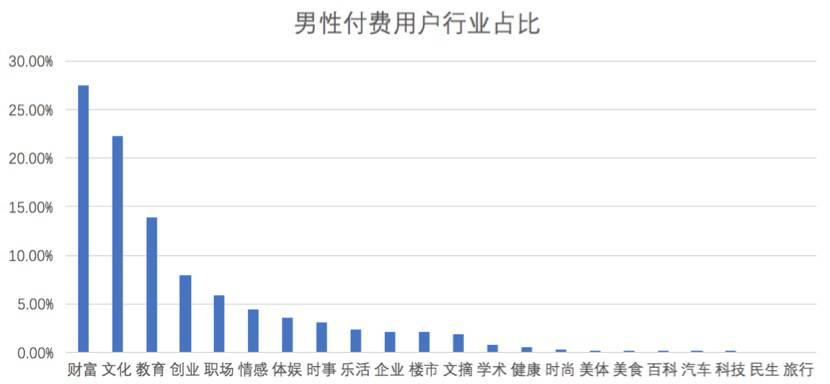 从行业的角度来说,女性更愿意为“文化”类内容付费,而男性掏钱买的更多是“财富”类内容。