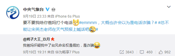关于这次台风取名的活动,有网友称中央气象台官微不正经,这还真是冤枉它了……因为,中央气象台微博画风一直如此。
