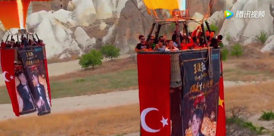 在土耳其上空升起带有王俊凯巨幅海报的热气球: