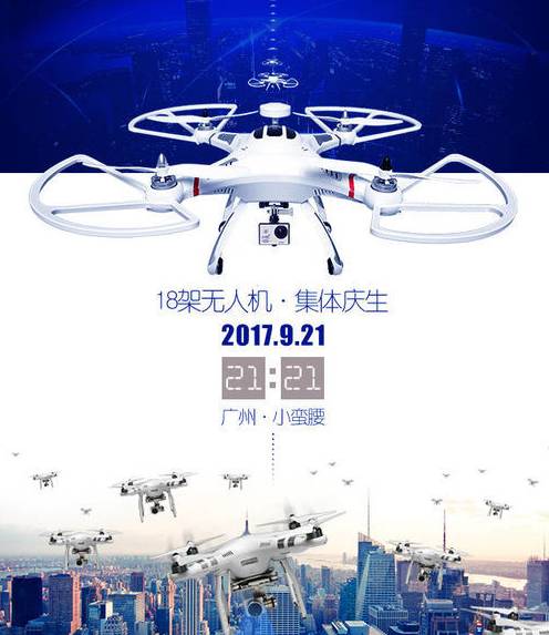 在广州的上空进行光影秀表演,18架无人机集体为王俊凯庆生: