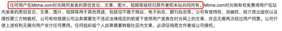 还有就是著作权共同所有。也就是平台和作者同时享受这个版权。但总的来说,这类条款极其极其少。但是也有,比如时光网。