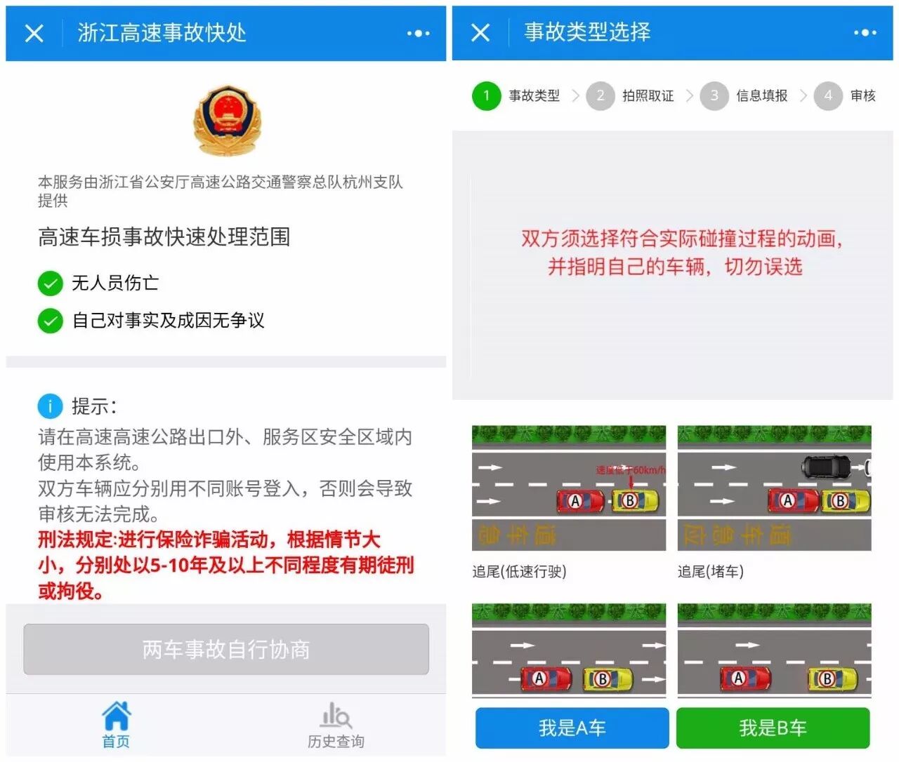 每年国庆都是出行高峰时段,在高速公路上发生的事故更是数不胜数。因此,在9月25日,高速交警杭州支队上线了小程序“浙江高速事故快处”。车主如果在杭州辖区的高速公路遭遇车祸,在人员未受伤、双方责任明晰、车辆依然能开动的情况下,可以使用该系统进行自助处理。