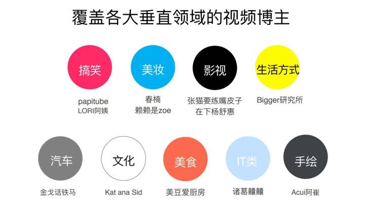 Papitube旗下覆盖的主要垂直领域及部分视频播主