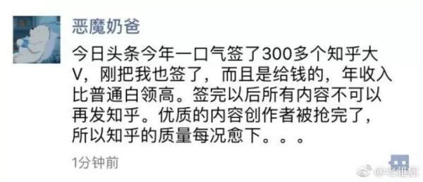 当今日头条签走300知乎大V时,正是刺中了知乎的软肋。长久以来,它未能帮助答主形成一定的激励措施。