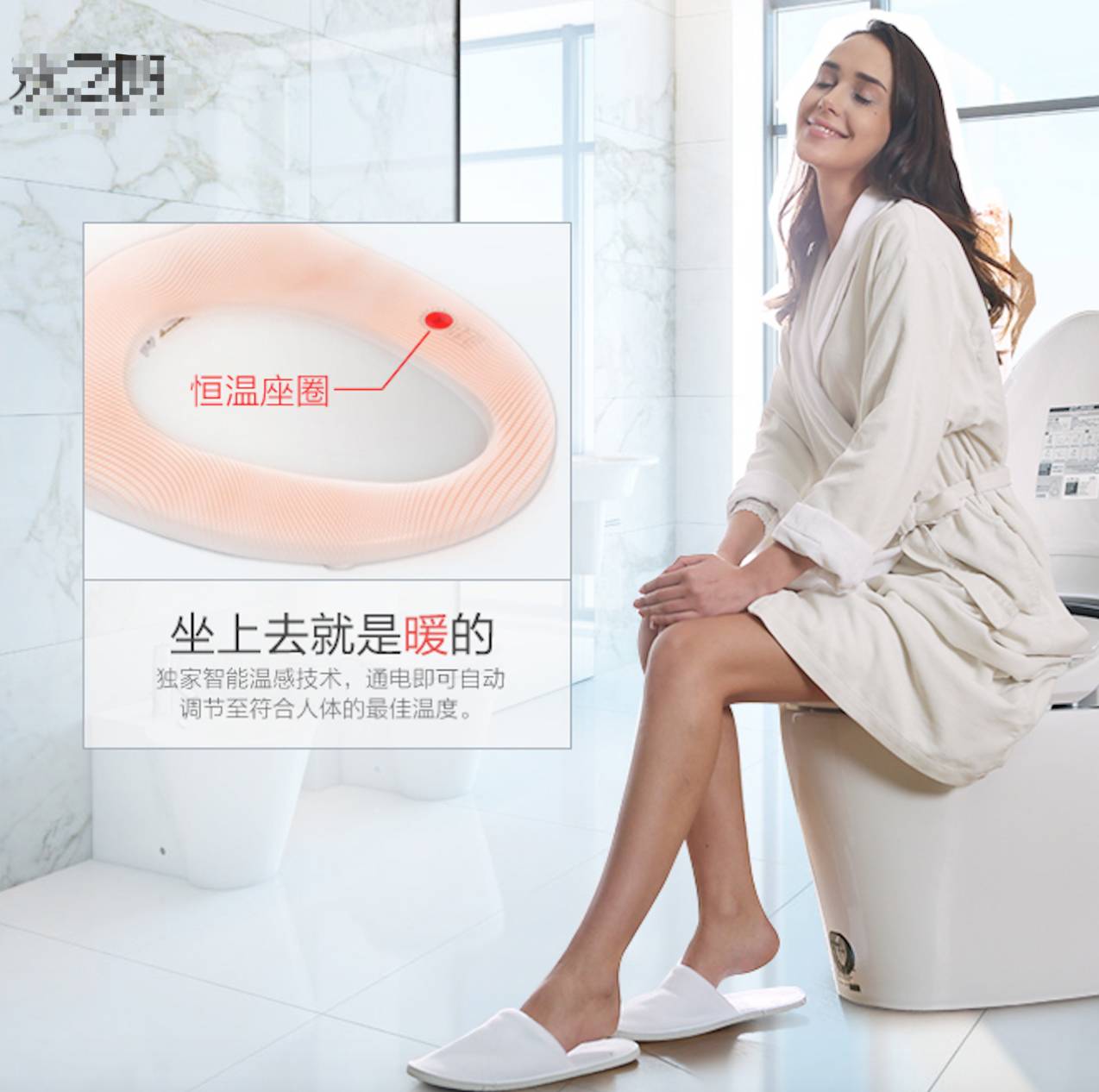 嘿,顾客一下就懂了。不用提前去加热,想蹲就蹲,多爽!比”智能芯片“、”微电脑技术“强多了。这些技术,可以放内文里去阐述,首先要写的是——对顾客的好处。