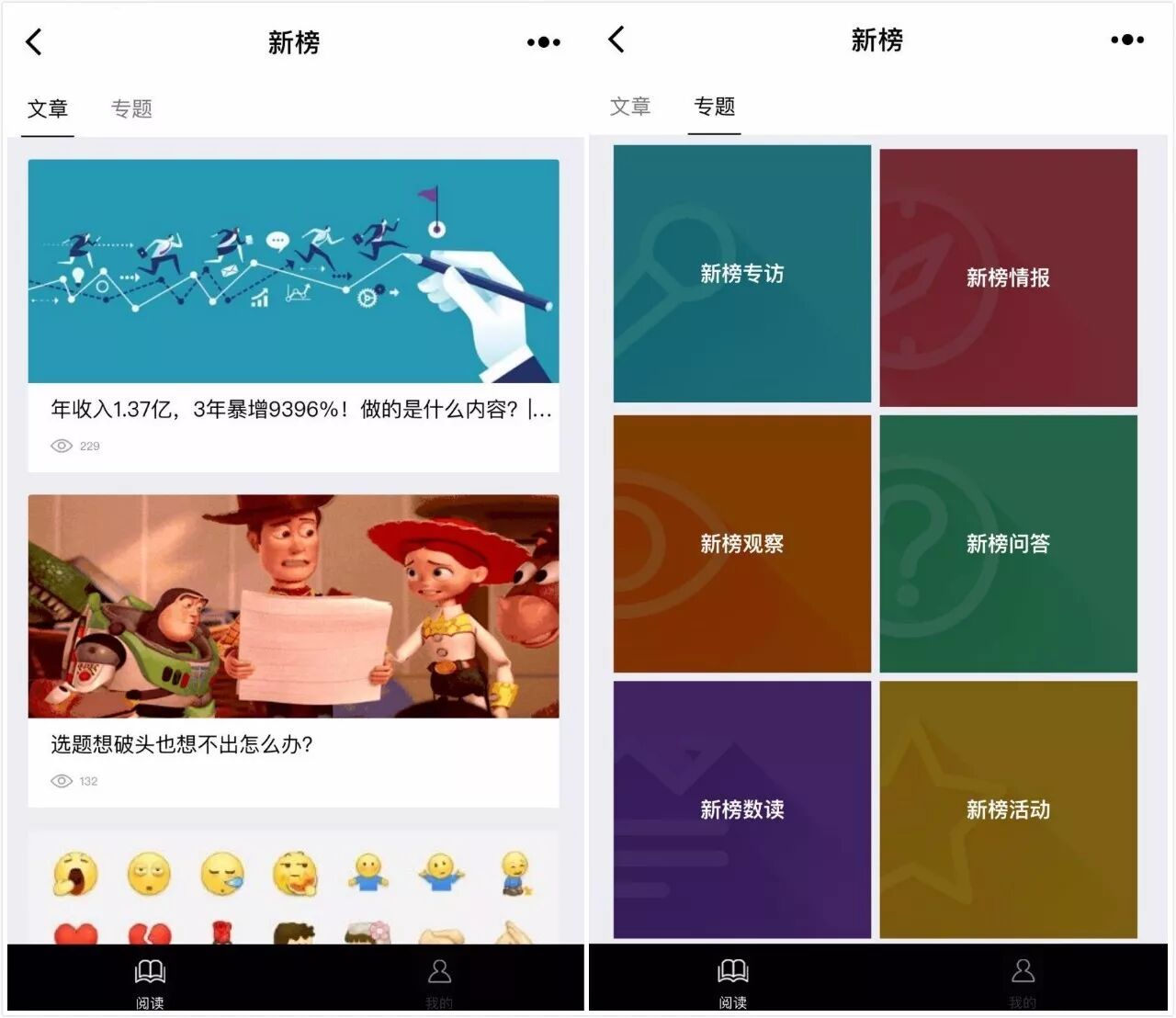 虽然目前新榜小程序上的一些内容,大家平时在新榜公众号也能看到,不过在小程序,榜哥榜妹目前为大家准备了6个栏目,方便大家更清晰快捷地找到自己需要的内容。