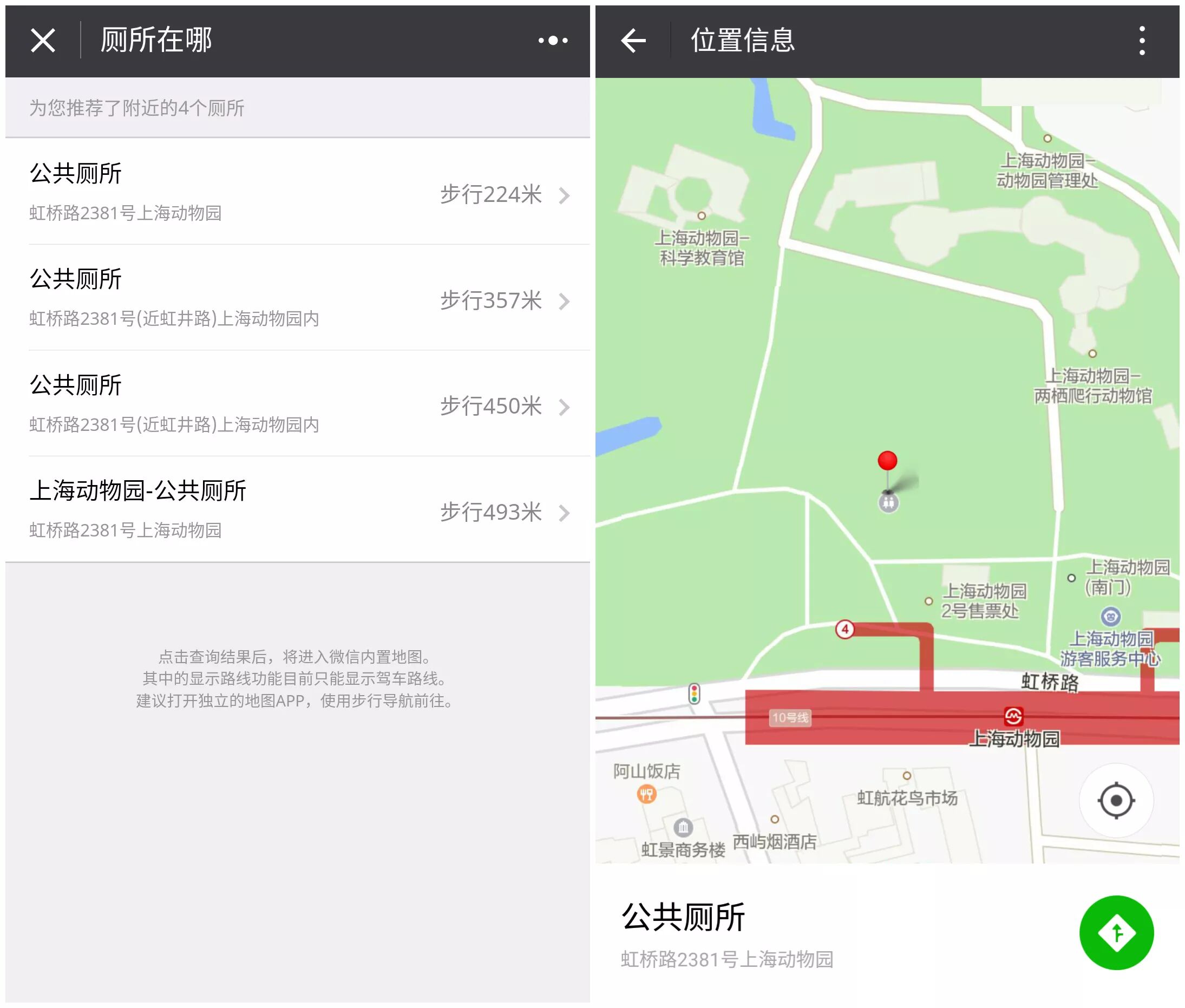 贴心如榜妹,找到了一个专门找厕所的小程序“厕所在哪”。在小程序中,“厕所在哪”会直接定位你的位置,告诉你方圆500米内的厕所位置,不熟悉路线的话还可以使用导航。