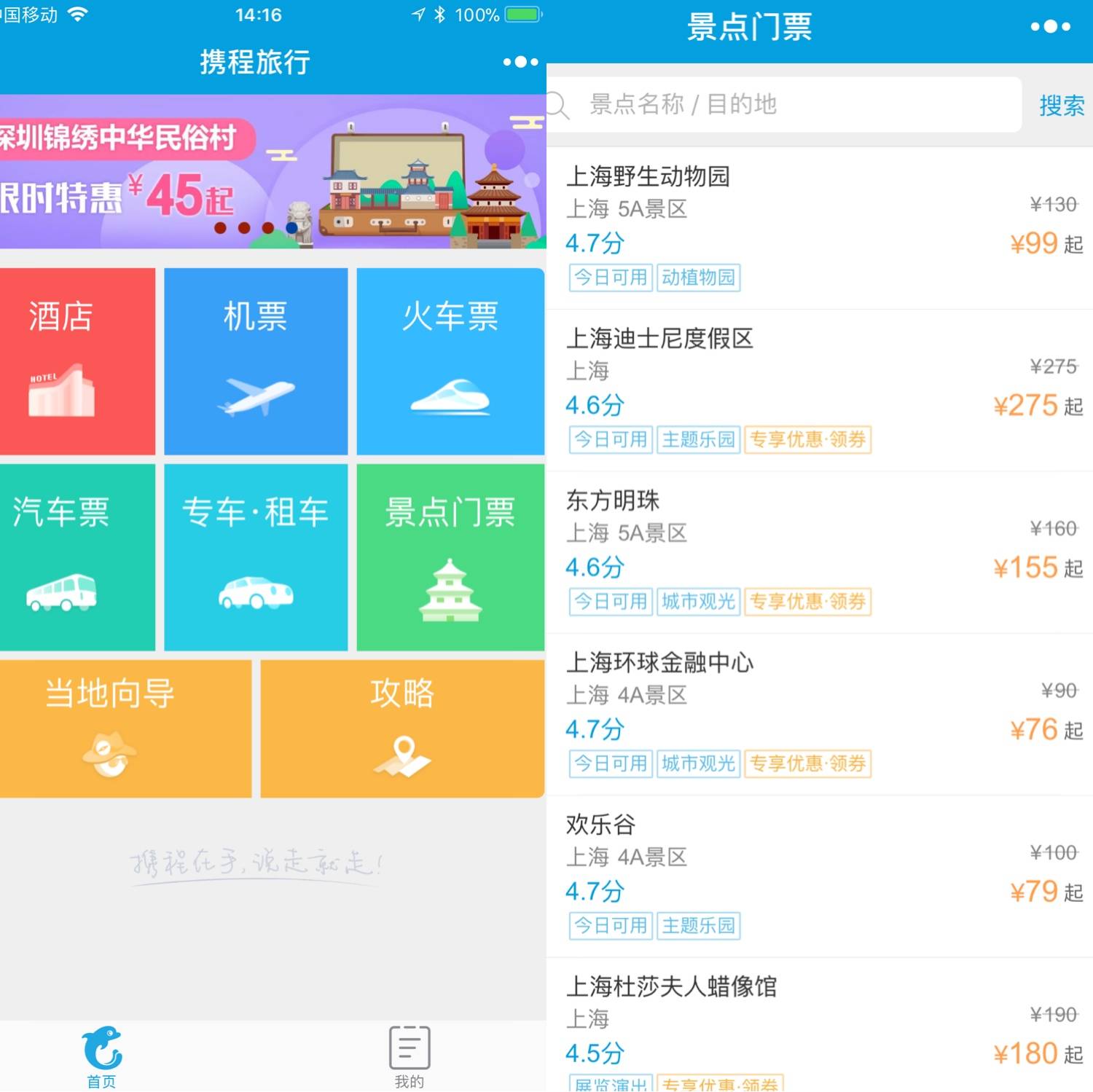 携程订酒店机票火车票汽车票门票