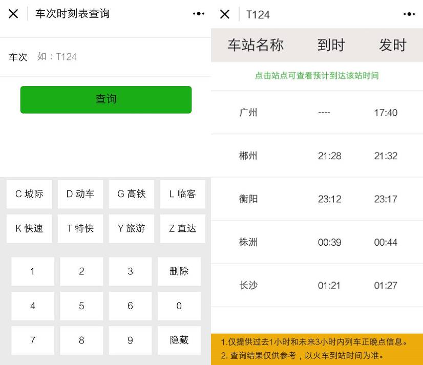 打开这款小程序,输入车次点击查询后,你就可以随时随地查看列车行驶到哪里,还可以通过点击站点查看预计到站时间,是不是很方便啊!