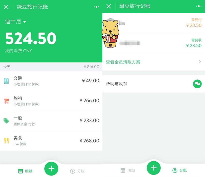 这时,你可以拿出这款名叫“绿豆旅行记账”的小程序,完整记录结伴出行的每一笔花销。只要打开小程序,便可以清楚看到账单啦!
