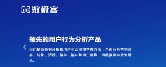 数极客基于AARRR用户生命周期管理模型提供全程解决方案产品,采用多维细分、同期群分析、漏斗分析、对比分析等超过十种数据分析方法为互联网经营者提供获客、活跃、留存、转化、用户行为等分析数据,提供全面开放的数据API,支持所有行业互联网平台在营销、运营、A/B测试等环节实时应用,通过精准数据分析提升营销、产品、运营的转化率,使您的经营更科学、更智能。