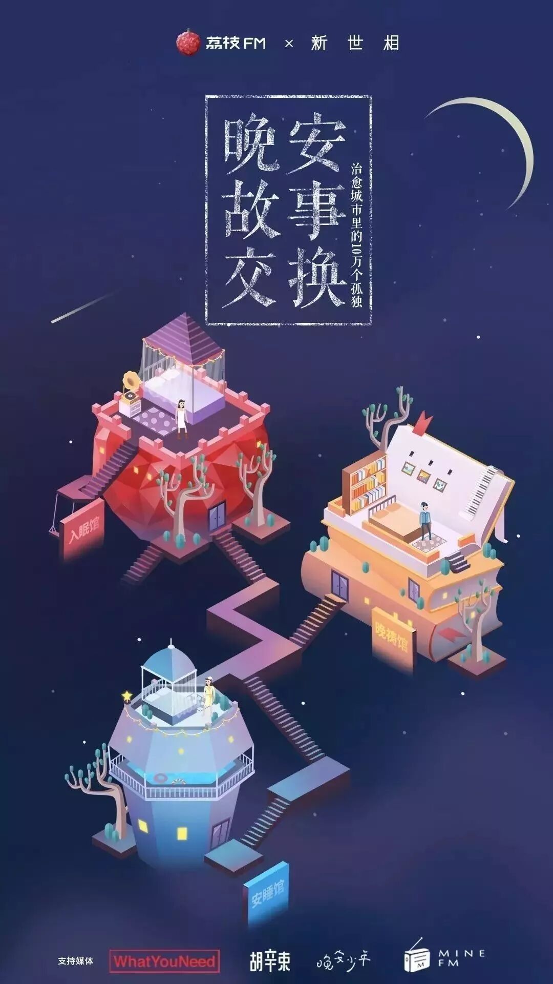 今年七夕,新世相上线的“自动告白系统”是交换活动的延伸。8月,新世相联合荔枝FM和四个自媒体(WhatYouNeed、胡辛束、晚安少年、Minefm),共同打造了覆盖千万人的“晚安博物馆”。六家共用交换系统,彼此的用户可以随机交换到来自另外五家平台的用户留言。