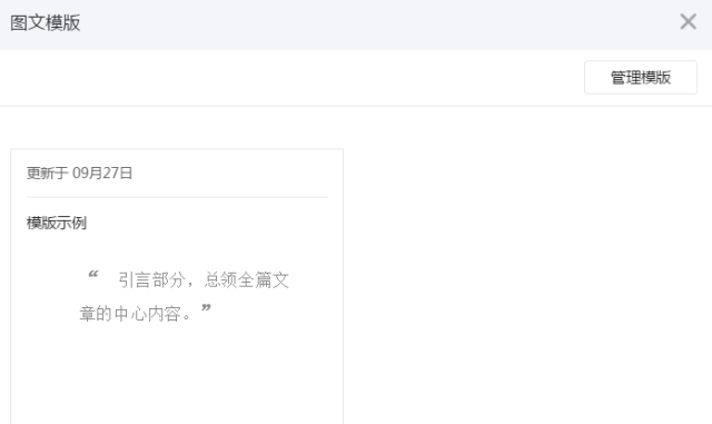 编辑图文素材时,可直接插入已收藏的模版使用。