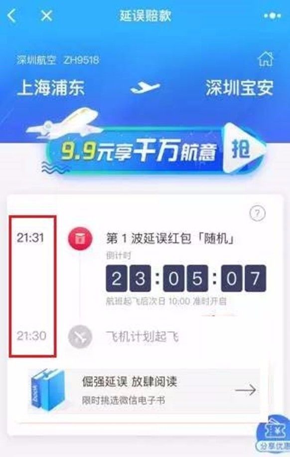 当然,在这个过程中,用户还可以随时查看延误进程,让用户的焦虑情绪得到缓解。数据显示,15%购买机场所延误险的用户都进入了微信读书。
