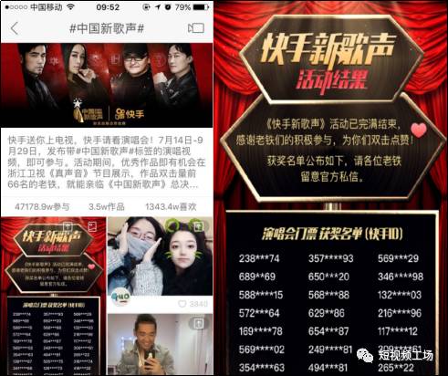 截至目前,快手APP上的#中国新歌声#活动参与量达到4.7亿,作品数量达到3.5万,喜欢数达到了1346.1万。