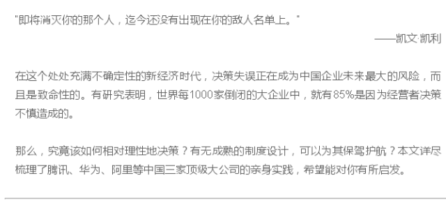 正和岛:《85%大公司都死于决策失误,腾讯、华为、阿里活下来靠什么?》