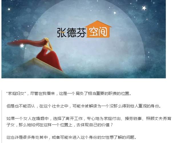 这里张德芬老师就是在文章开头就构建了“家庭主妇”这样一个群体的社会痛点,相信这个群体的人或与之相关的人看到了,肯定会继续读下去。