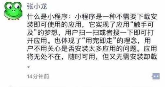 标题是疑问句,但全篇都在以不容置喙的口吻论述“小程序是新的宇宙观”。他在文中写出小程序的三个误区:流量入口、用完即走和伤害自家App。同时给出6条建议,核心是“提高小程序的曝光和使用体验”。