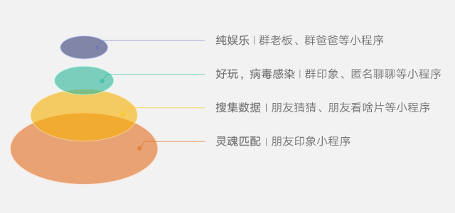 最外围是“群老板”等纯娱乐的小程序,也间接起到前两层的作用。