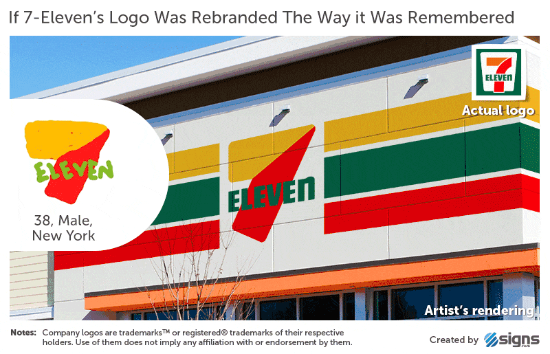 7-11标识的微妙之处在于,eleven这个单词中末尾的n是小写的。只有1%的人正确记住了这个细节。而在我们的询问过后发现,这1%的人其实和7-11便利店并没有什么关联性。
