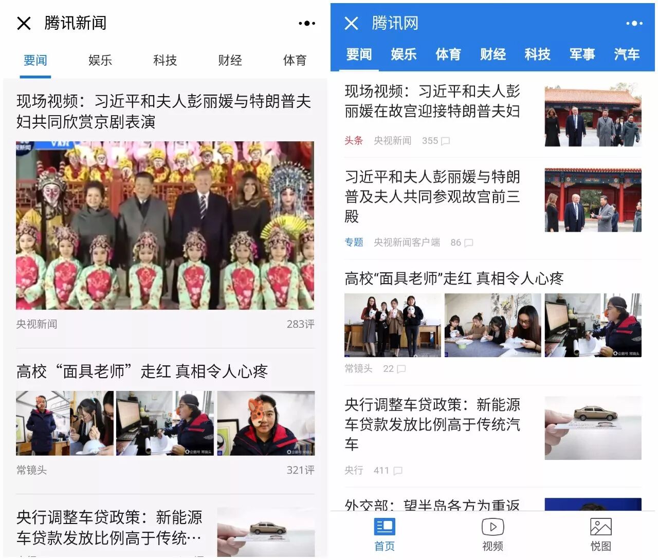 左图为“腾讯新闻精华版”,右图为“腾讯网”